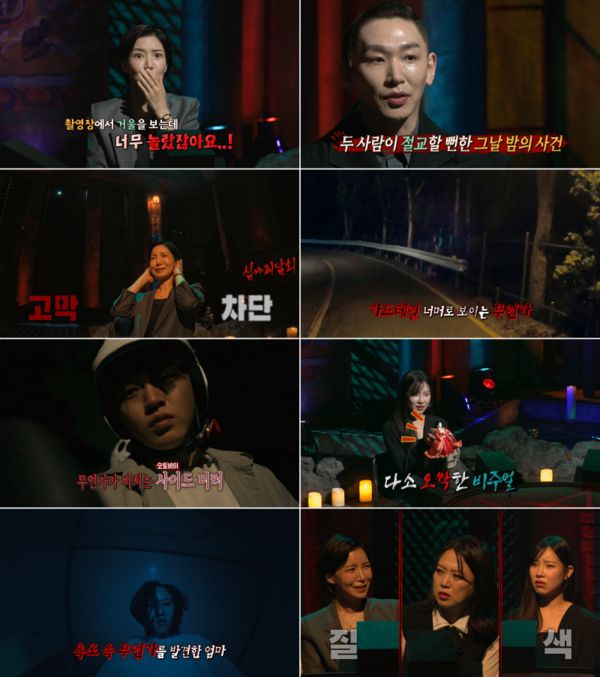 특히 윤세아는 영화 '홈캠'을 촬영하며 겪은 충격적인 일화를 공개했다. 영화 자문을 맡은 무당이 경고했던 '금기'를 호기심에 어긴 스태프가 있었는데, 해당 스태프가 촬영 도중 응급실에 실려 갔다는 이야기에 MC들을 경악하게 했다. 또한 윤세아는 촬영 내내 거울만 보면 소름 돋는 존재가 보여 거울을 제대로 볼 수 없었다고 전하며, 믿기 힘든 오싹한 에피소드들을 털어놓았다.