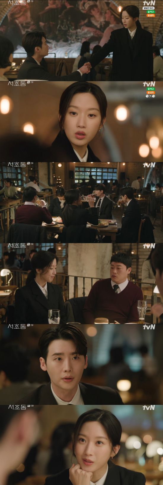 6일 방송된 tvN 새 토일드라마 '서초동' 2회에서는 강희지(문가영 분)가 안주형(이종석)과 10년 전 홍콩에서 만났다고 밝힌 모습이 그려졌다.