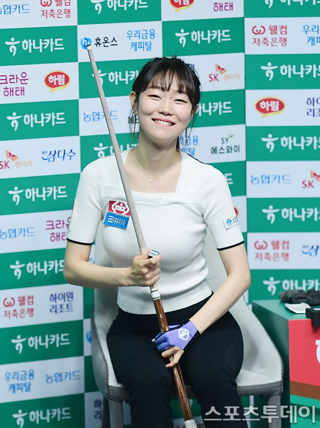 [고양(경기)=스포츠투데이 권광일 기자] 2025-2026 시즌 LPBA 2차 투어 '하나카드 LPBA 챔피언십' 결승전 경기가 6일 경기 고양시 킨텍스 PBA스타디움에서 열렸다. 김보라가 결승 경기에서 미소를 짓고 있다. 2025.07.06. [스포츠투데이 권광일 기자 sports@stoo.com]이 기사의 카테고리는 언론사의 분류를 따릅니다.0공유하기