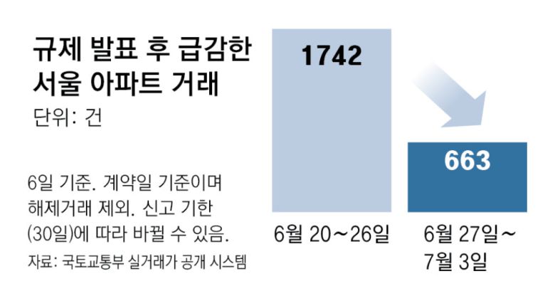 [대출 규제 열흘] 서울 아파트 거래-주담대 반토막