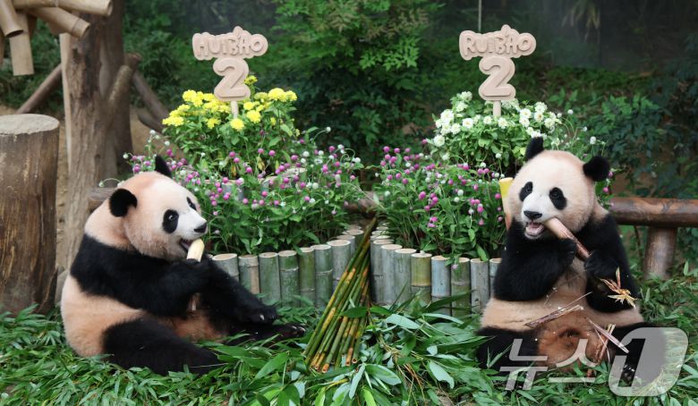 (용인=뉴스1) 김영운 기자 = 쌍둥이 아기판다 루이바오·후이바오가 두돌 생일을 맞은 7일 오전 경기 용인시 처인구 에버랜드 판다월드에서 루이바오·후이바오가 먹이를 먹고 있다. 2025.7.7/뉴스1kkyu6103@news1.krCopyright ⓒ 뉴스1. All rights reserved. 무단 전재 및 재배포, AI학습 이용 금지.이 기사의 카테고리는 언론사의 분류를 따릅니다.0공유하기