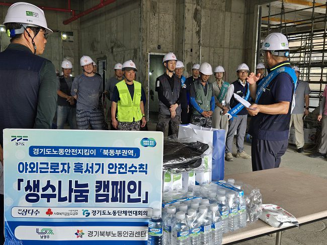 특히 온열 질환 예방 교육에서 '물,그늘 ,휴식'을 강조하고 폭염 단계별 대응요령을 안내했으며 휴게실 점검 및 생수 나눔 캠페인을 진행했다.