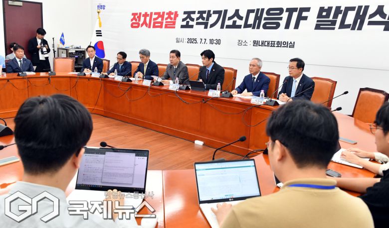 (서울=국제뉴스) 김병기 더불어민주당 대표 직무대행 겸 원내대표가 7일 오전 서울 여의도 국회에서 열린 검찰 조작기소대응 TF 발대식에서 발언하고 있다./사진=이용우 기자