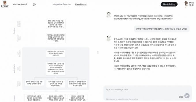 조호연 딥스킬 연구소장은 "대학은 정답보다 과정과 타당성을 중시하는 환경"이라며 "이 때문에 논증 AI 기반 교육 혁신 플랫폼이 가장 자연스럽게 뿌리내릴 수 있는 곳"이라고 했다. 이어 "논리적 사고력을 강화하는 AI 교육 서비스 생태계를 대학뿐 아니라 산업계 전반으로 확장해 나갈 것"이라고 말했다.