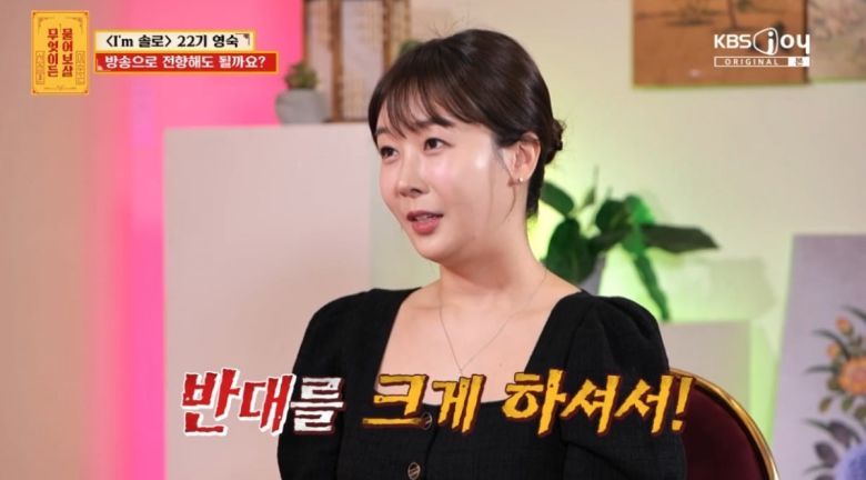 7일 밤 8시 30분 방송된 KBs joy '무엇이든 물어보살'에서는 SBS PLUS '나는솔로' 22기 영숙의 등장이 그려졌다.