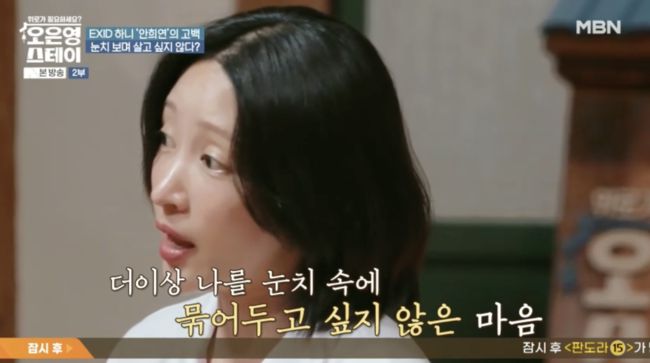이후 ‘오토크’ 시간, 하니는 “제가 눈치를 많이 보는 편이다. 근데 이제 그만 보고 싶다”라며 “눈치 보는 게 힘든데, 봐야 하는 환경 속에 있었어야 하는 거 같다. 그러면서 최근에 살면서 이런저런 일들을 겪으면서, 뭔가 내 삶이 내 뜻대로 되는 게 아니구나,를 많이 느꼈다"라고 말했다.