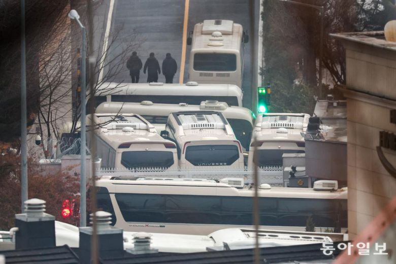 1월 6일 오전 서울 용산구 한남동 대통령 관저 정문에 수사기관의 수색을 막기 위한 차벽이 세워져 있다. 장승윤 기자 tomato99@donga.com |