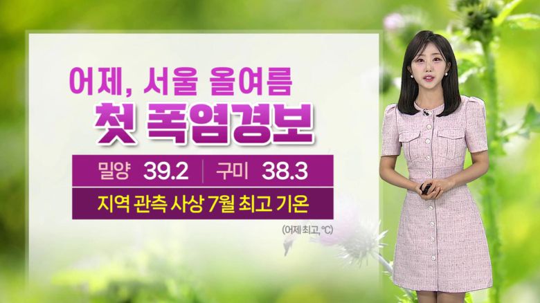 작년보다 18일 빠른 건데요. 밀양과 구미 등에서는 40도에 육박하는 기온을 보이면서, 이 지역 관측 사상 역대 7월 최고 기온을 경신했습니다.