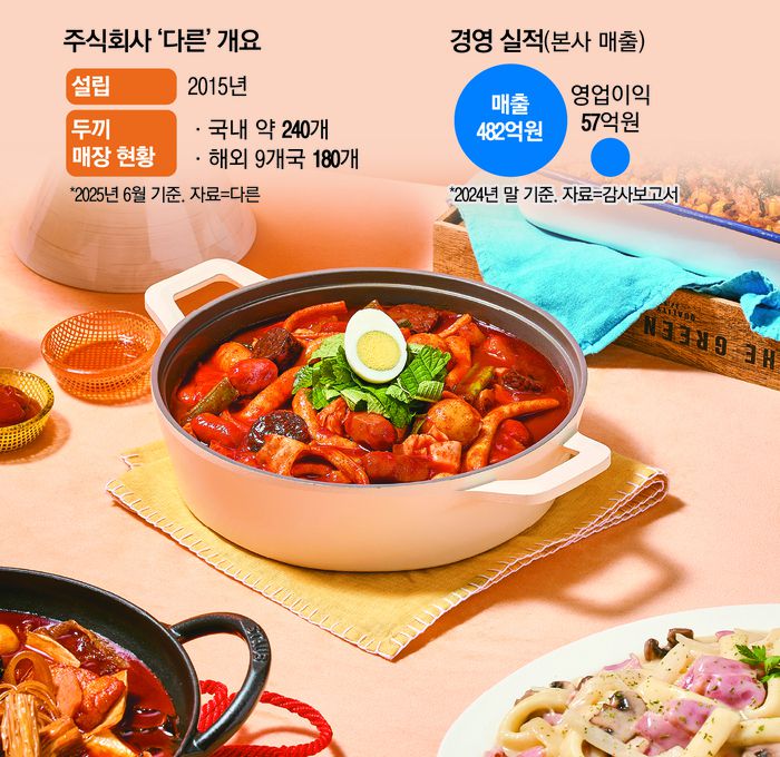 다른은 2014년 12월 서울 고려대 부근에 떡볶이 뷔페 ‘두끼’ 1호점을 내며 출발했다. 이듬해 법인을 전환한 후 빠르게 성장했다. 두끼는 1호점을 낸 지 1년 만인 2015년 12월 50호점, 2017년 2월 100호점을 각각 돌파했다. 두끼는 ‘떡볶이로 한끼, 볶음밥으로 두끼’라는 의미를 담고 있다. 국내 매장 중 한 달에 매출 1억원 이상 나오는 곳도 있다.