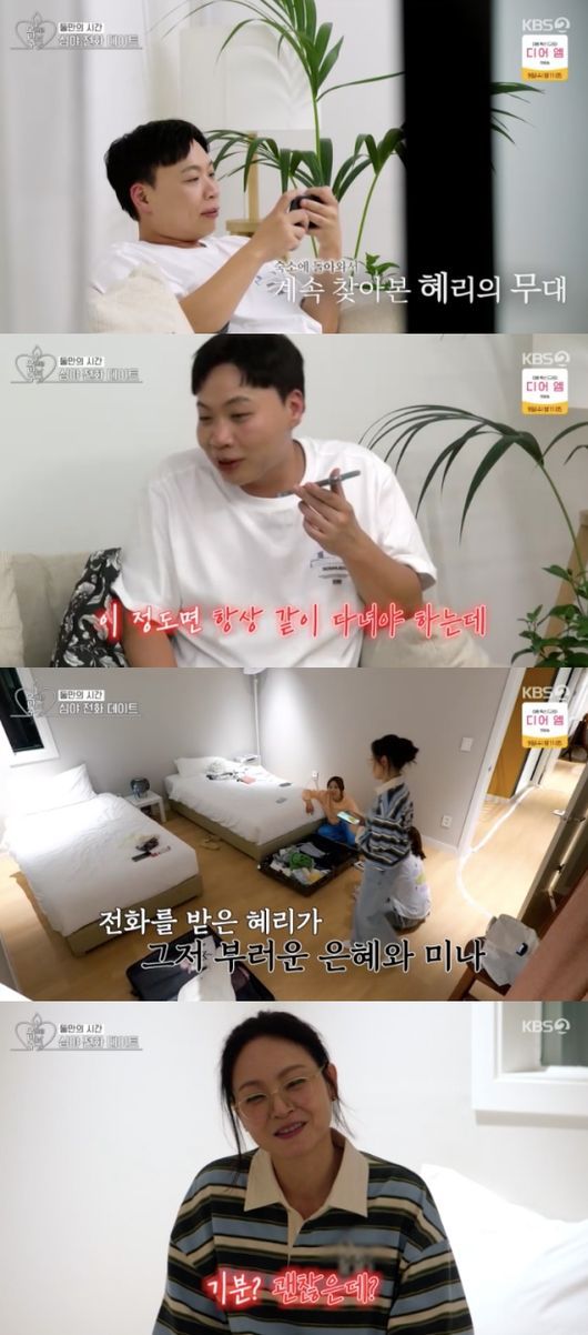 전화를 마친 왁스가 방으로 돌아오자 박은혜와 신봉선은 부럽다는 반응을 보였다. 왁스는 “기분 괜찮다. 자기 사람은 잘 챙기는 스타일이라는 걸 느꼈다. 의외의 진중함을 봤다. 하지만 연상은 생각이 없다는 이야기가 혼란스럽다. 어떻게 행동을 해야 하는지 되게 어렵더라”라고 말했다.