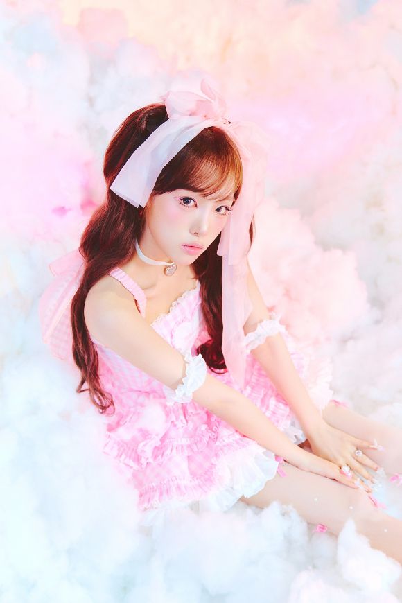 또 다른 사진에서는 구름 위에 앉아 있는 모습으로 공주 같은 자태를 드러냈다. 분홍빛으로 물든 동화 속 한 장면처럼 로맨틱하고 사랑스러운 분위기를 자아낸 최예나는 자신만의 통통 튀는 감성을 담은 '예나 코어' 무드를 완성했다.