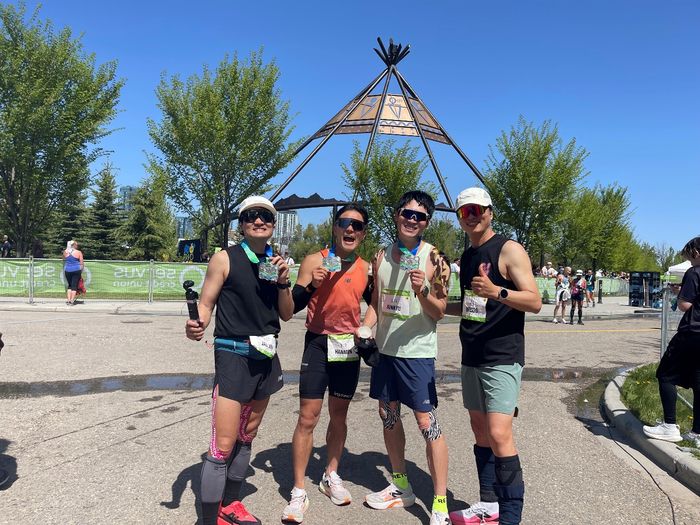 유튜버 올레와 배우 진선규, 전배수, 고한민이 2025년 캘거리 마라톤을 성공적으로 완주했다.