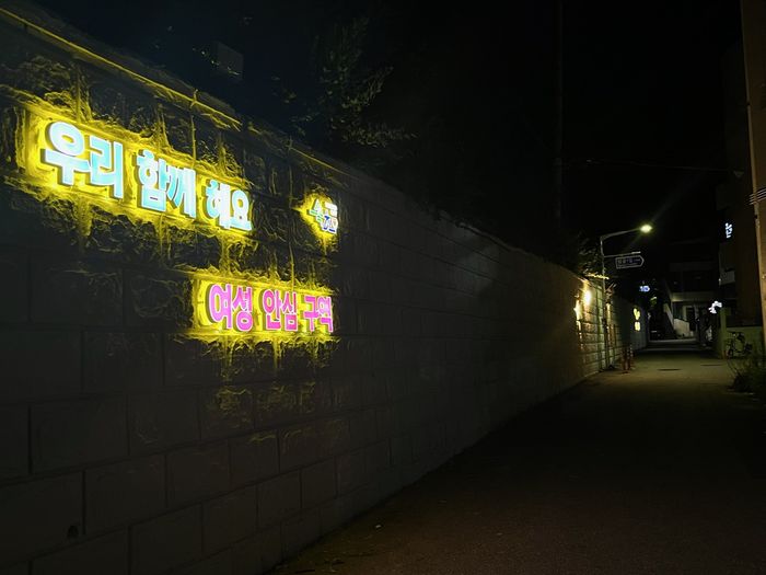 속초여고 후문 부근에는 벽화조명과 노면표시가 함께 설치됐다. 특히 어두운 옹벽에는 도색과 LED 벽화조명을 설치해 조도를 개선하고, 심리적 안정감과 범죄 억제 효과를 높였다. 연풍사 부근에는 양방향 노면표시를 설치해 보행자와 운전자 모두가 여성안심구역임을 쉽게 인식할 수 있도록 했다.