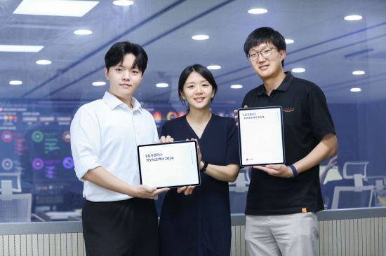 LG유플러스 임직원이 '정보보호백서 2024'를 소개하고 있다. LG유플러스 제공 |