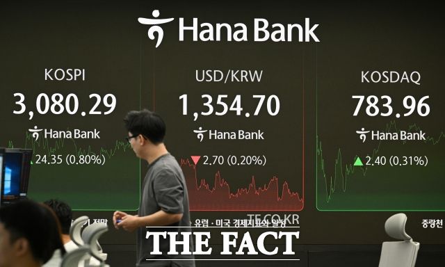 8일 한국거래소에 따르면 이날 오전 9시 18분 기준 코스피는 전날보다 1.09% 오른 3092.75에 거래 중이다 /박헌우 기자 |
