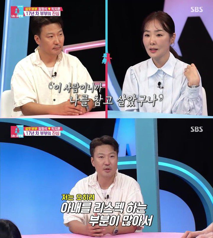 박지윤은 "예전엔 제가 혼자 다 참고 산다고 생각했는데 내 착각이었다. 이 사람이 이런 성격이기 때문에 나 같은 사람을 참고 살았다고 느끼고서는 되게 고맙다"고 했고, 정형석은 "아내를 존경하는 부분이 많다. 저보다 훨씬 나은 사람이라고 생각한다"고 서로 고마운 마음을 표현하며 17년 차 부부 다운 끈끈함과 애정을 드러냈다.
