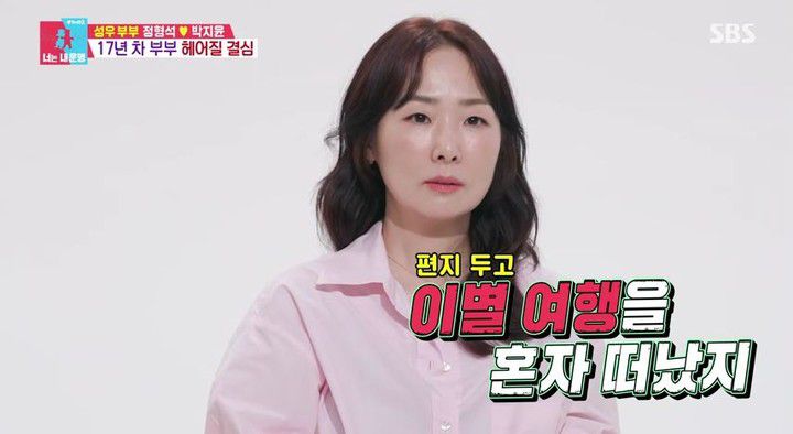 박지윤은 가족과 함께하는 시간을 중요하게 생각하는 자신과 달리 가정에 소홀한 정형석의 모습에 "남편이 있음에도 혼자 다 하는 게 좀 버거웠는데, 없어도 내가 더 마음이 편하겠다는 생각을 했었다"며 당시를 회상했다.