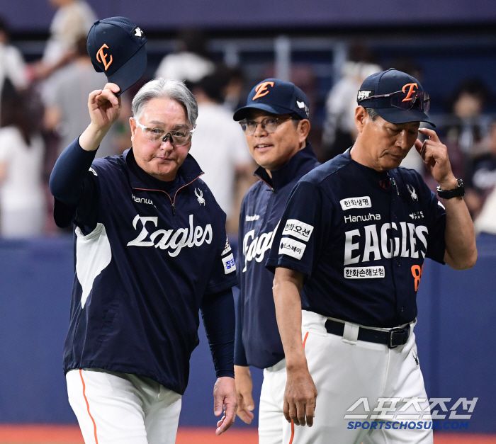 6일 서울 고척돔에서 열린 KBO리그 키움과 한화의 경기. 한화가 키움에 승리하며 시리즈 스윕승을 달성했다. 경기 종료 후 팬들에게 인사하는 김경문 감독. 고척=송정헌 기자songs@sportschosun.com/2025.07.06/