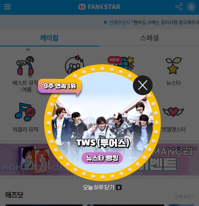 투어스는 지난 30일부터 7일까지 진행된 '팬앤스타' 7월 첫째 주 뉴스타 랭킹 투표에서 4만 8252표를 얻으며 1위에 올랐다. 이어 아일릿은 2만 1956표를 얻으며 2위를 차지했고 판타지 보이즈가 1만 6350표로 3위에 이름을 올렸다.