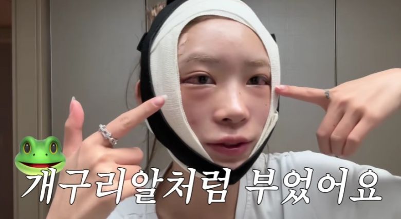 하지만 다음 날 최준희는 "어제보다 조금 더 많이 부었다. 눈 밑에 멍이 조금 더 진해졌다. 뒷밑트임도 같이 해서 흰자 결막 부기가 조금 더 심해졌다"면서 "아프거나 그러진 않다. 자연스러운 현상이라 해서 딱히 신경 안 쓰고 있다"고 설명했다.