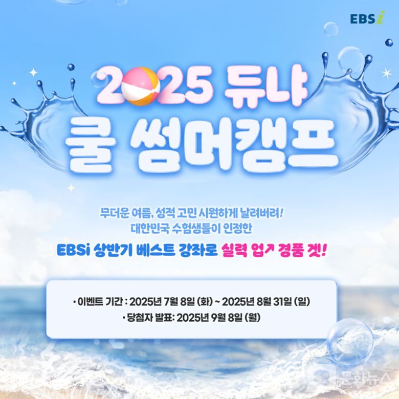 (문화뉴스 이미숙 기자) EBS가 무더운 여름, 성적 고민으로 지친 수험생들을 위해 '2025 듀냐 쿨 썸머캠프' 이벤트를 EBS 고교강의 사이트 (이하 'EBSi')에서 진행한다고 8일 밝혔다.