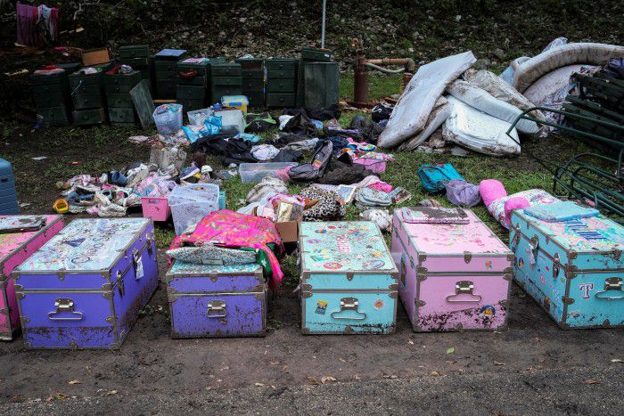 미 텍사스 홍수 피해 지역의 '캠프 미스틱' 참가 어린이들이 남긴 여행가방./로이터 연합 |