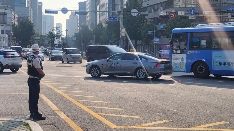 그늘 하나 없는 도로 위에서 동대문경찰서 소속 심 모(30) 경장의 호루라기 소리는 멈출 새가 없었습니다.