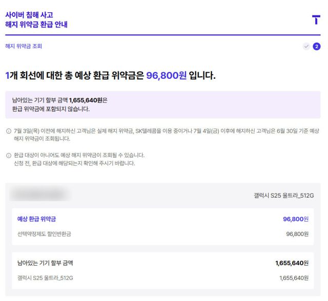 다만 SK텔레콤에 따르면, 해당 금액은 예상 위약금으로 실제와 차이가 있을 수 있다. 이미 SK텔레콤을 떠나 타 통신사로 이동한 가입자는 SK텔레콤 서비스를 해지하면서 앞서 지불한 위약금을 환급받게 된다.