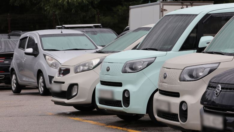 계속되는 경기 불황에 중고차 시장을 중심으로 경차가 인기를 끌고 있다. 지난달 25일 서울 장안평의 한 중고차 매매단지에 주차돼 있는 경차들 모습. 연합뉴스 |