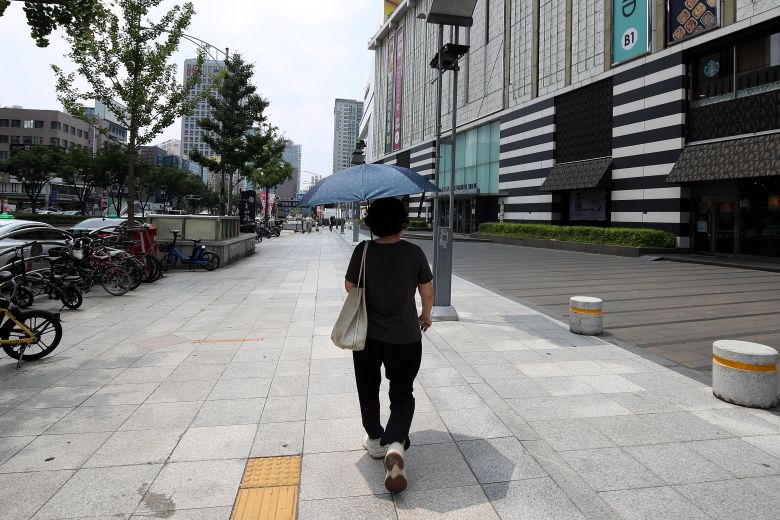 절기상 '소서(小暑)'인 7일 대구는 폭염특보가 열흘 넘게 이어지고 있다. 불볕더위가 연일 기승을 부리는 가운데 이날 오후 대구시 중구 반월당사거리 주변 도심이 한산한 모습이다. /뉴스1 |