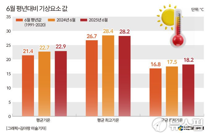 이 같은 더위는 이미 예고돼왔다. 올해 6월 평균기온은 1973년 관측 이래 최고를 기록했기 때문이다. 6월 전국 평균기온은 22.9도로 평년보다 1.5도 높았으며 가장 더웠던 지난해(22.7도)보다 0.2도 높았다.