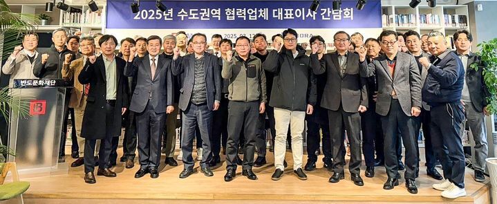 반도건설이 지난 3월 2025년 수도권역 협력업체 대표이사 간담회를 열고 기념촬영을 하는 모습. 반도건설 제공