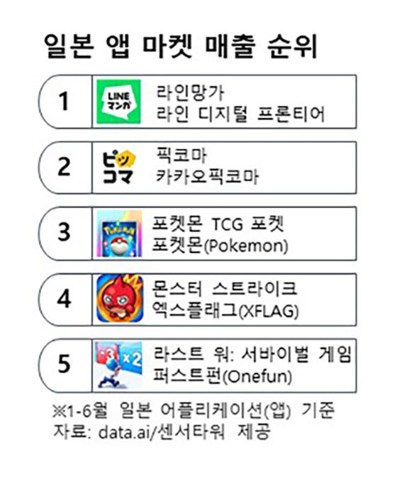 데이터 분석 플랫폼 데이터닷에이아이 집계⋯"지난해 5월 日 전체 앱마켓 1위 오른 후 주도권"