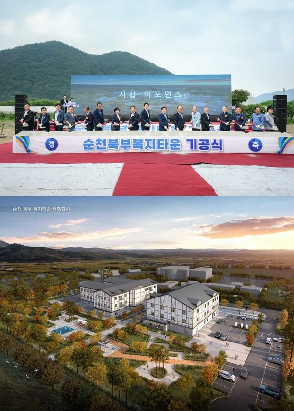 어르신 복지공간인 순천 북부복지타운 기공식과 조감도. |