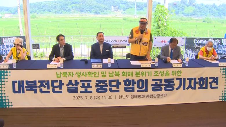 납북자가족모임 최성룡 대표는 경기 파주시 임진각에서 기자회견을 열고 "오늘(8일)부로 납치된 가족 소식지 살포를 전면 중단하겠다"며 다른 단체들에게도 동참을 요청했습니다.