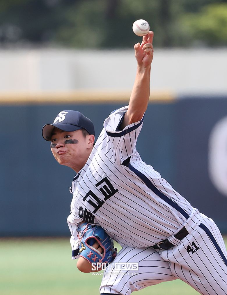 [스포티비뉴스=목동, 곽혜미 기자] '제80회 청룡기 전국고교야구선수권대회' 서울고와 부산고의 8강전이 8일 오후 서울 양천구 목동야구장에서 열렸다. 서울고 선발 박진권이 역투하고 있다.