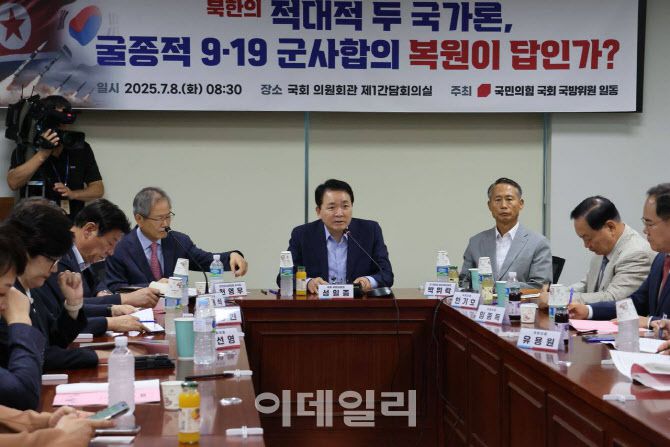 성일종 국회 국방위원장 주도로 국민의힘 국방위원회 위원들이 8일 공동 주최한 ‘북한의 적대적 두 국가론, 굴종적 9·19남북군사합의 복원이 답인가’ 토론회에서 성 위원장은 ‘적대적 두 국가’를 선언한 김정은 북한 국무위원장의 의도를 언급하며 “이 치명적 상황을 지켜보고 있는 집권세력이 아무 전제 조건 없이 남북군사합의를 복원하겠다는 것은 평화를 구걸하겠다는 또 다른 선언이라는 점을 명심해야 한다”고 강조했다.