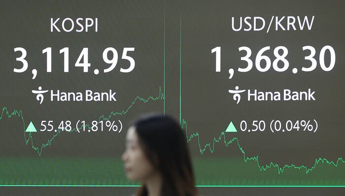도널드 트럼프 미국 대통령이 8월1일부터 우리나라의 대미 수출품에 25% 상호관세를 부과할 계획이라고 밝힌 뒤 열린 8일 주식시장에서 코스피가 1.8% 급등해 3100을 넘어서며 연중 최고치에 바짝 다가섰다.