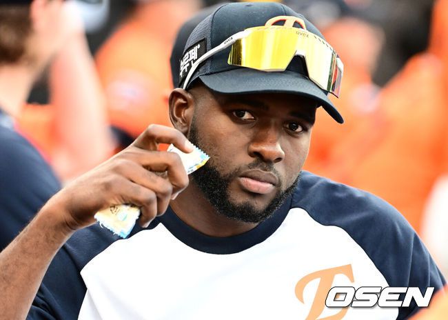 [OSEN=대전, 지형준 기자] 14일 대전 한화생명볼파크에서 2025 신한 SOL Bank KBO리그 한화 이글스와 LG 트윈스의 경기가 열렸다.LG가 40승 26패 1무(승률 .606)로 1위, 한화는 40승 27패(승률 .597)로 2위다. 0.5경기 차이다. 경기 결과에 따라 1위가 바뀔 수도 있다.이날 한화는 폰세, LG는 임찬규를 선발로 내세웠다.부상으로 6주 재활 선수로 등록된 한화 플로리얼이 더그아웃에서 경기를 지켜보고 있다. 2025.06.14 /jpnews@osen.co.kr