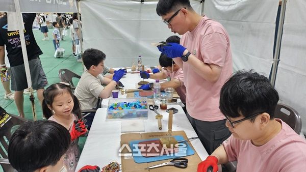‘스킨디아모스’, ‘마스킹테이프 페인팅’등은 색과 질감을 활용해 자신만의 작품을 만드는 체험으로 인기를 끌었고, ‘티셔츠 디자인’, ‘워터매직 바디페인팅’, ‘셀프 인생 사진’처럼 개성을 표현하는 활동도 큰 호응을 얻었다.