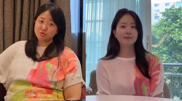 영상 속 김다예는 다이어트 전 입었던 옷을 똑같이 입고 포즈를 취하고 있다. 얼굴형과 옷의 핏이 확연히 달라진 모습이다.