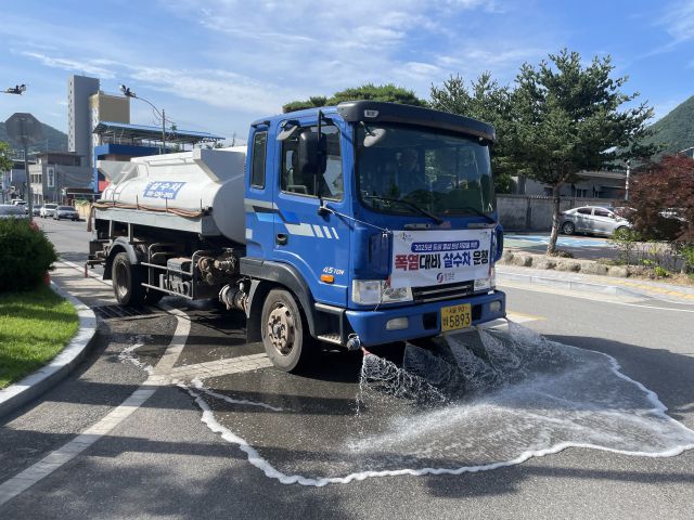 ▲폭염에 대비해 살수차가 운영되고 있다ⓒ영양군청 |