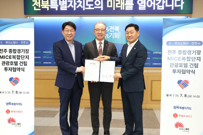 전북자치도와 전주시, 롯데쇼핑㈜이 전주 옛 종합경기장 부지에 추진하는 전북형 MICE 복합단지의 핵심 사업 가운데 하나인 관광호텔에 대한 투자협약을 체결했다.