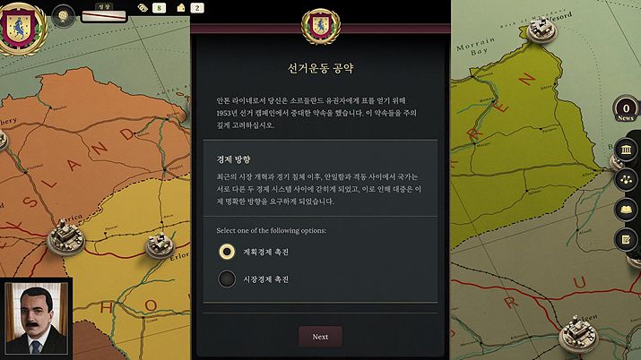 가장 먼저 소개해드릴 작품은 ‘수저린’입니다. 2020년 12월 스팀에 출시된 정치 시뮬레이션게임으로, 유저 평가 ‘매우 긍정적(8,497명 참여, 93% 긍정적)’을 받고 있죠. 플레이어는 가상 국가 ‘소르들란드’의 수장이 되어 여러 국정을 운영하게 됩니다. 선택에 따라 국가의 운명이 달라지는 것은 물론, 다른 정치 시뮬레이션에 비해 의사결정 과정이 텍스트 위주로 구성되어 있어 마치 정치 비주얼 노벨을 하는 듯한 느낌을 전달하죠. 텍스트가 많은 만큼 언어 장벽이 높았으나, 유저 한국어 패치가 등장해 접근성이 한층 좋아졌습니다.