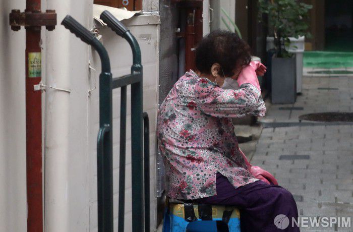 [서울=뉴스핌] 김민지 기자 = 장마철 무덥고 습한 날씨가 계속된 29일 오후 서울 종로구 돈의동 쪽방촌에서 한 어르신이 흐르는 땀을 닦고 있다. 2022.06.29 kimkim@newspim.com |