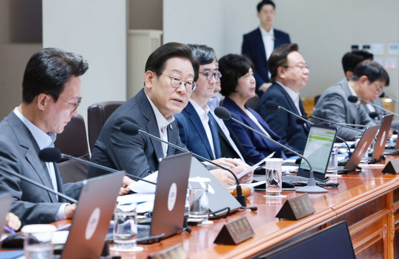 이재명 대통령이 8일 용산 대통령실에서 국무회의를 주재하고 부처 보고를 받고 있다. /연합 |