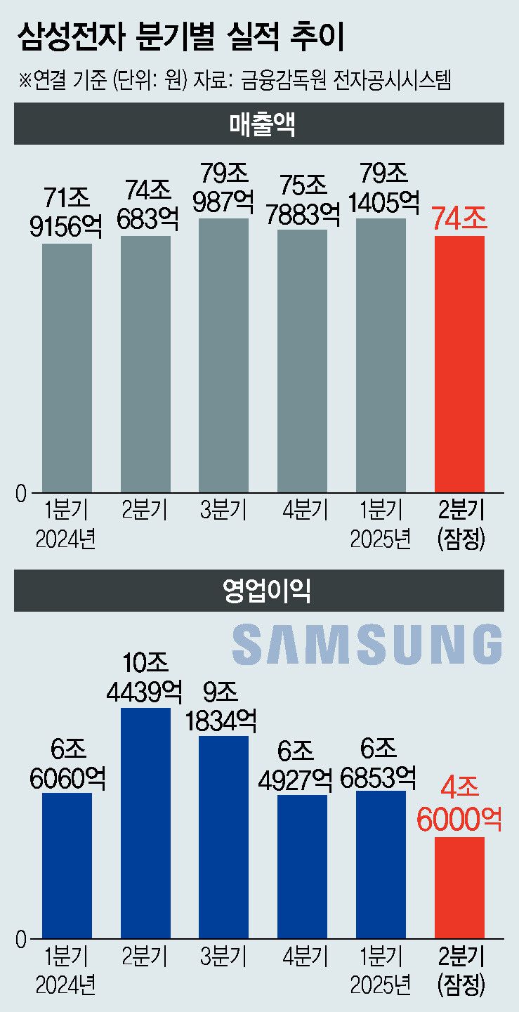 여기에 미국의 대중 제재 여파로 비메모리 반도체 판매에도 차질을 빚고, 시스템반도체 설계 및 파운드리(반도체 수탁생산) 부문 전반의 적자도 지속한 것으로 분석된다. 반도체 부문 영업이익이 1조원 안팎으로 쪼그라들고, 모바일(MX)·네트워크 사업부 등도 올해 2월 출시한 스마트폰 갤럭시 S25의 흥행 소멸 등으로 이익이 둔화했다는 이야기다.