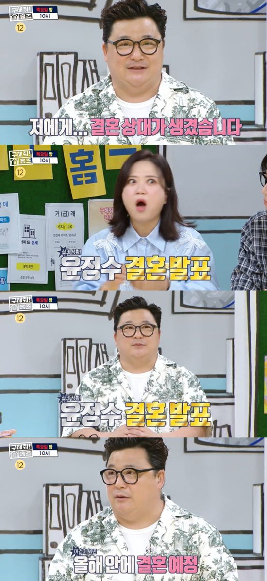 이날 MBC '구해줘! 홈즈' 측은 윤정수의 결혼 발표가 담긴 영상을 선공개했고, 영상 속에서 윤정수는 "저에게 결혼을 전제로 만나는 사람이 생겼습니다"라고 밝혀 현장에 자리한 모두를 놀라게 했다.