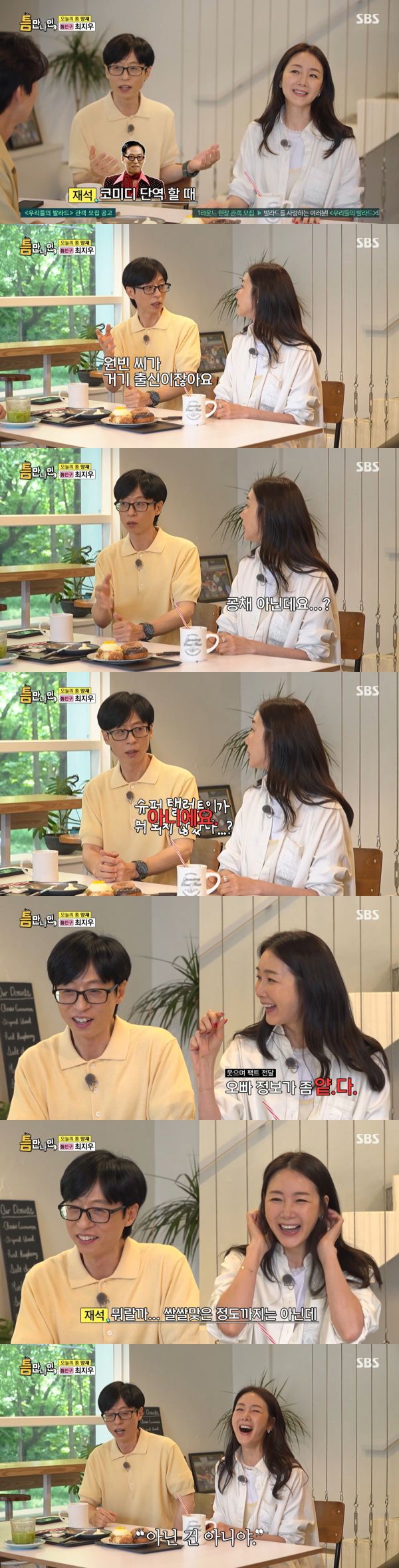 8일 방송된 SBS '틈만 나면,'에는 '틈 친구'로 최지우가 출연했다.