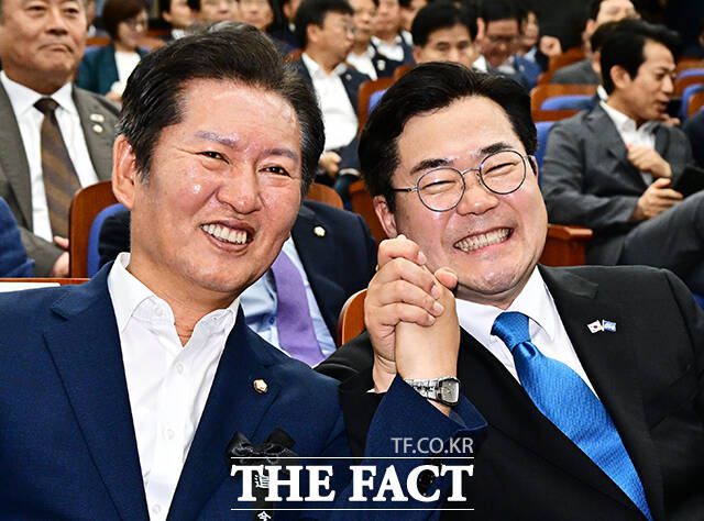 [더팩트ㅣ국회=김세정 기자] 8월 2일 치러질 더불어민주당 전당대회를 약 한 달 앞두고, 당권 경쟁을 펼치는 정청래·박찬대 의원이 호남 민심 잡기에 사활을 걸었다. 호남은 민주당의 전통적 텃밭이자 전당대회 승패를 결정짓는 핵심 지역으로 꼽힌다는 점에서 두 주자의 호남 공략은 전략적 필연이라는 평가다.